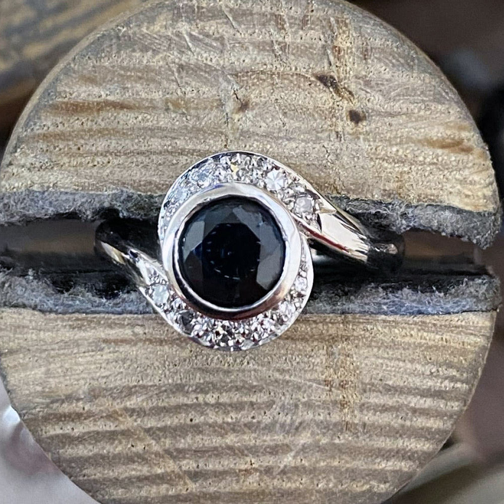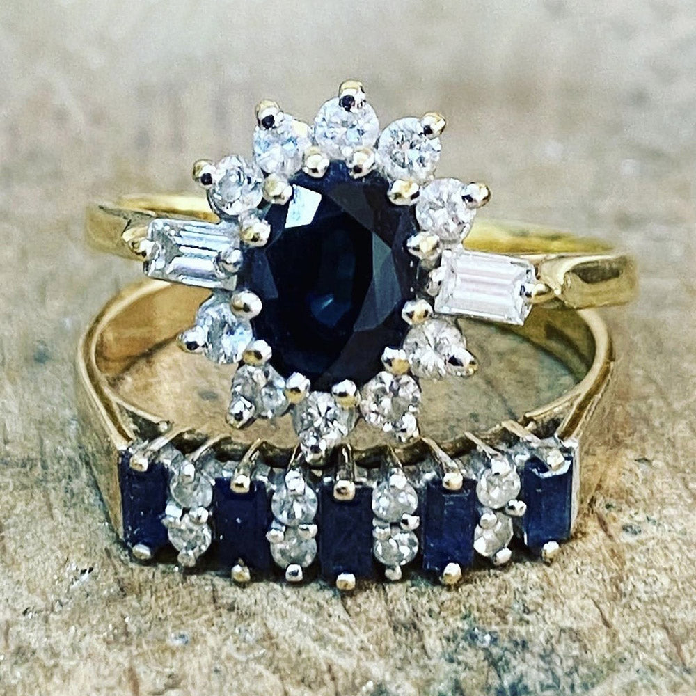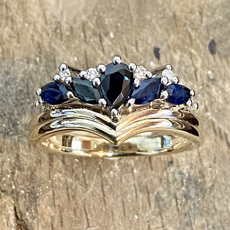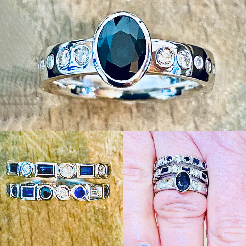 Morven called me about a diamond and sapphire ring that she wanted remodelled to fit her existing wedding ring. I had made Morven’s interlocking wedding ring to fit her engagement ring and although it was over 20 years ago I still had all the wedding ring dimensions on file.It was a simple job to remodel her sapphire and diamond ring to fit her wedding ring perfectly.
