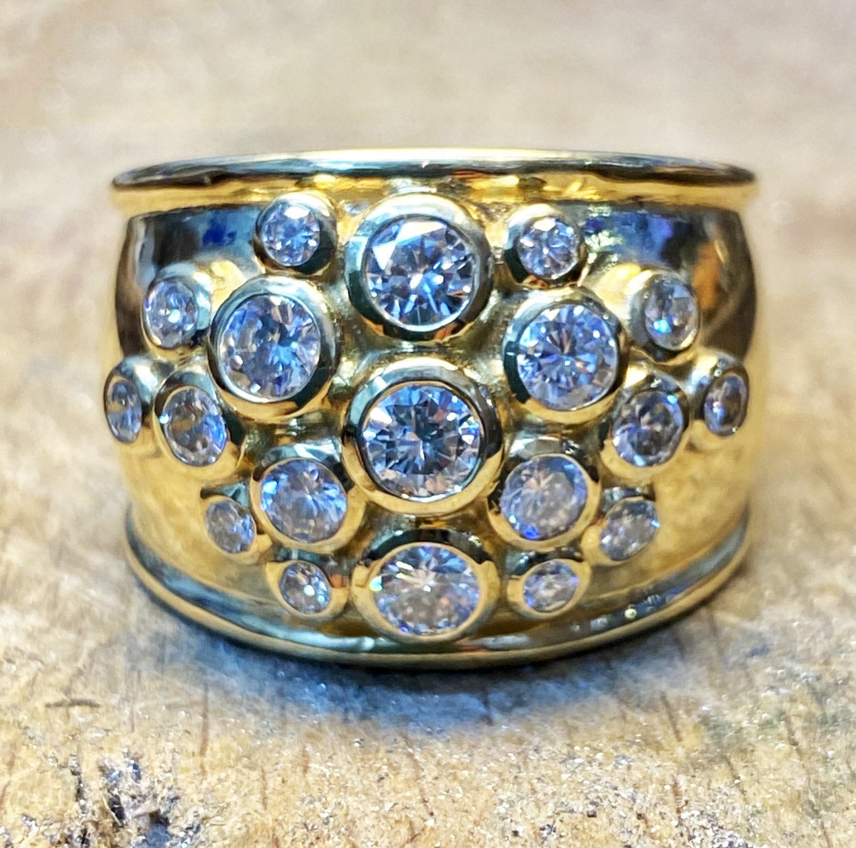 The design brief was to put all the diamonds and gold in to one ring that she could wear every day, to remind her of her family. It was lovely chatting to her about the memories connected to each diamond, each stone has a special sentimental meaning for her.