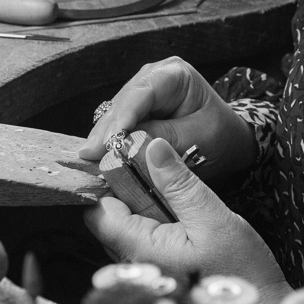 We take a relaxed and collaborative approach in the design process, bringing your ideas from concept to reality with our signature aesthetic weaved into the design. We can offer our expertise by way of guidance in choosing the best materials to compliment your piece, as well as gemstone selection to set the design off perfectly.